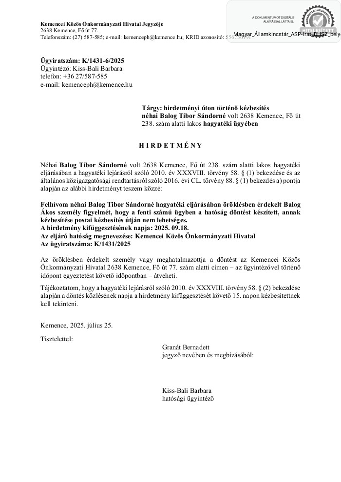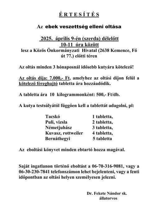 Beküldte Kemence Község ... - h, 10/06/2025 - 15:45