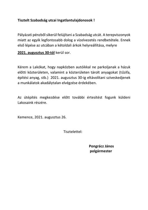 Ezúton értesítjük a lakosságot, hogy településünk területén földi úton történő szúnyoggyérítés kerül elvégzésre.