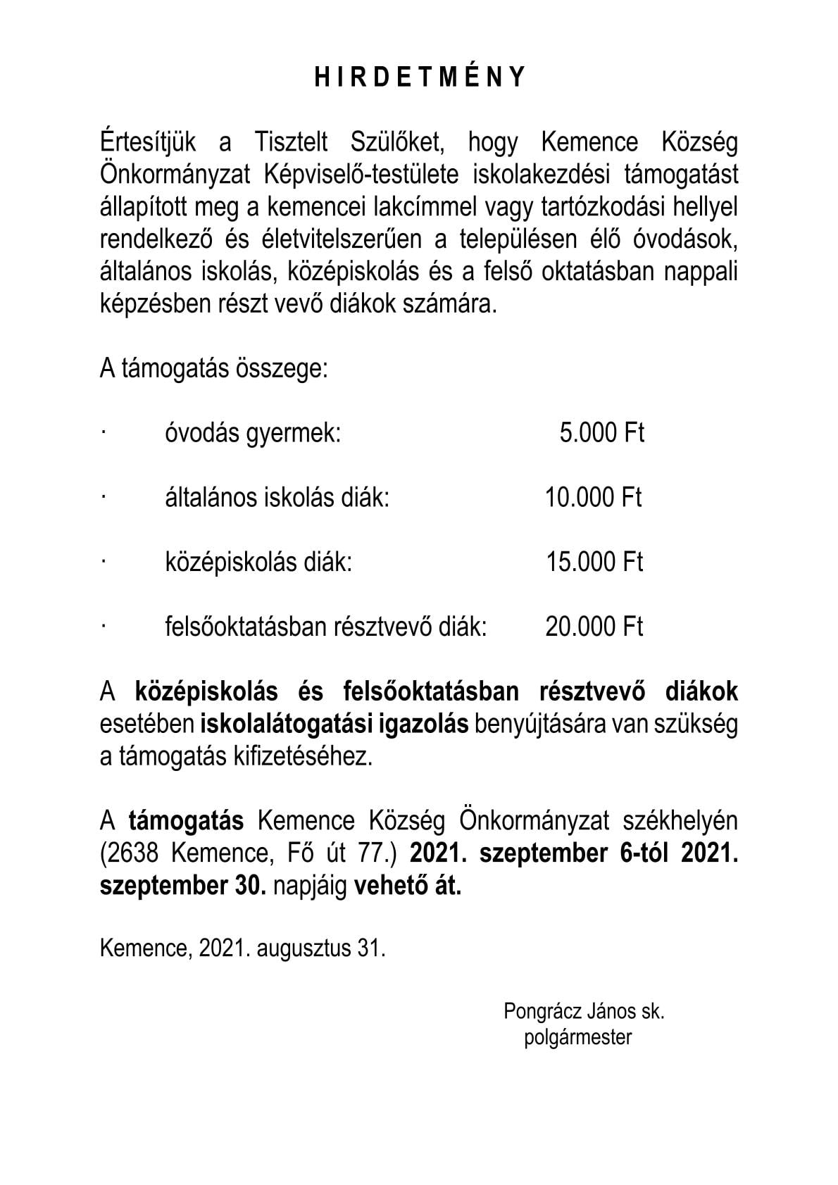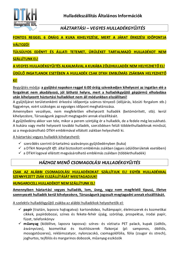 A lakosság részére javasolt intézkedések: